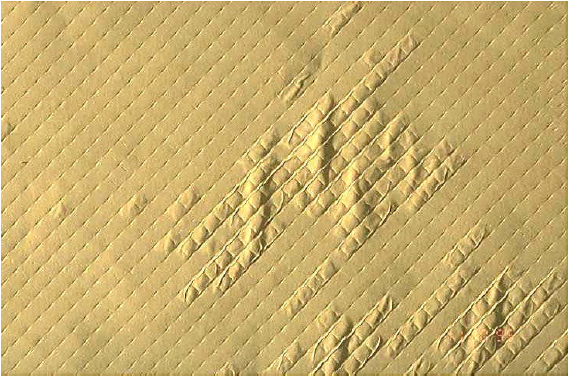 任何時刻,產水壓力高于進水或濃水0.3bar,復合膜就可能發生復合層間的剝離,可通過產水探測法來確定這類損壞。當打開受到產水背壓嚴重損壞的膜葉時,通常還會看到平行于產水管的膜最外邊出現拆痕,常常靠近最外側的膜袋粘接線處。膜的破裂最有可能出現在進水側、最外側和濃水側這三處粘接密封線附近,其他位置受到進水網格的支撐,很多網格的小格內就會出現很多氣泡狀剝離,使得膜脫鹽層受到強烈拉伸,元件的脫鹽率降低。