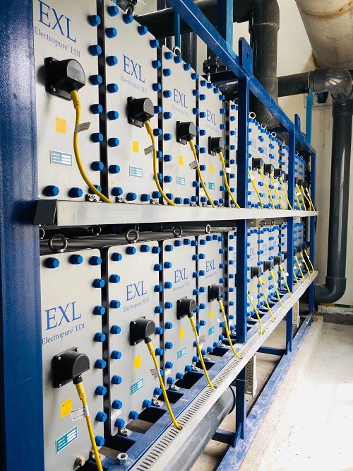 EDI模塊內充滿了離子交換樹脂,可以從給水中去除離子負載,然后為帶電物質向陽極(+)和陰極(-)遷移/擴散提供介質,它們穿過離子交換膜進入濃縮室,然后被帶走,遷移/擴散的結果是產生了超純水。