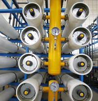 反滲透和納濾系統(tǒng)給水中的微生物會(huì)在膜表面沉降、凝結(jié)形成一層生物膜。一般來說生物膜的厚度若超過了一定界度就會(huì)形成生物污染。使得原水側(cè)的通路阻力增大,原水和濃水之間的壓差增加。同時(shí),由于微生物膜阻擋,系統(tǒng)運(yùn)行的有效壓力也會(huì)減少,從而導(dǎo)致系統(tǒng)脫鹽率的下降。以下這些消毒方法均含有氧化物質(zhì),適用于反滲透和納濾系統(tǒng)前面的設(shè)備和管道。采用這些方法消毒后,必須清洗干凈所有管路,確保沒有氧化性物質(zhì)之后,給水才能流入反滲透和納濾系統(tǒng)。