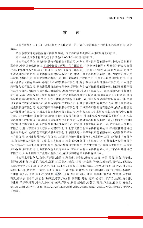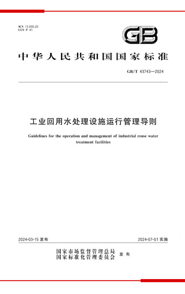 2024年3月15日,由深圳中拓天達環境工程有限公司(以下簡稱“中拓環境”)主要參與制定(排名第五)的《工業回用水處理設施運行管理導則》(GB/T 43743-2024)國家標準通過國家標準化管理委員會的批準,將于7月1日起正式實施。這項標準歷經三年的制定、討論、修改和完善,自2021年成功立項以來,終于迎來了正式發布的時刻。