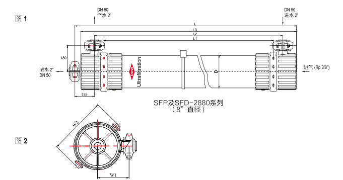SFP-2880膜組件適用于流量在 50 m3/hr(220 gpm)以上的系統。